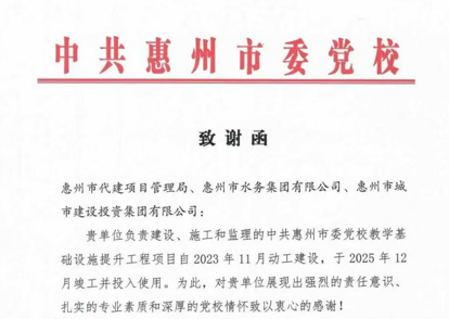 惠州市水電建筑工程有限公司成立于一九六四年四月,隸屬惠州市水務集團有限公司,是一家國有綜合性施工企業,主營水利水電工程、房屋建筑、市政工程等施工業務。公司擁有水利水電工程施工總承包一級、建筑工程施工總承包一級、市政公用工程施工總承包一級、公路工程施工總承包三級,公路路基、路面及建筑裝修裝飾專業承包二級,環保工程、機電安裝、河湖整治、輸變電工程專業承包三級等經營資質……